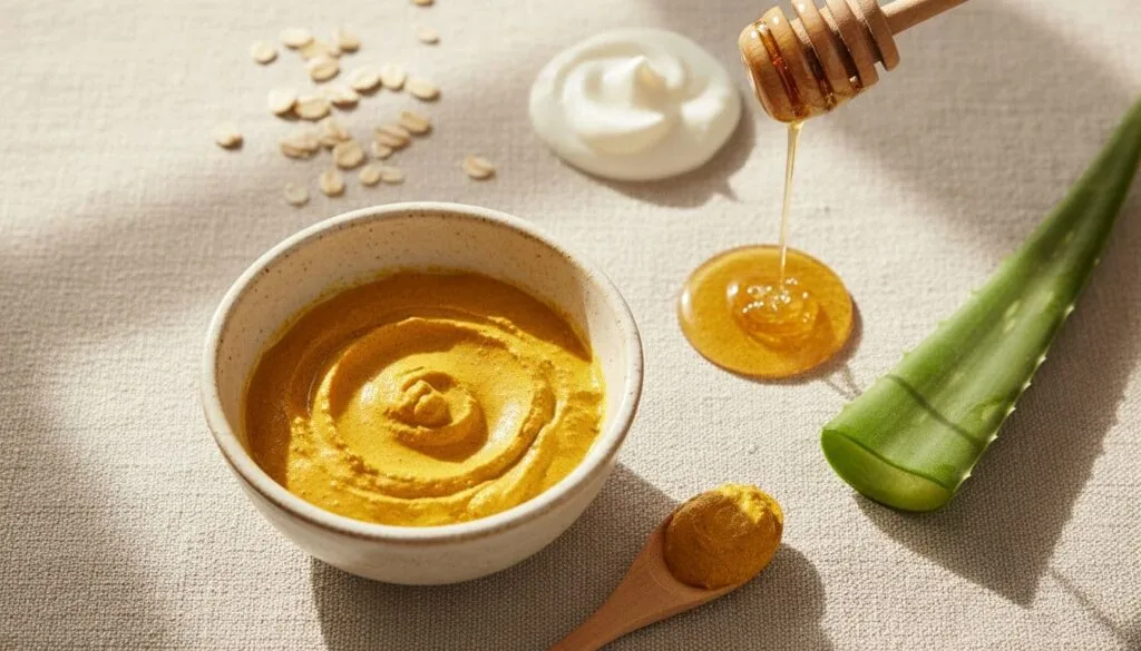 Recent studies, including updates in 2025, show curcumin helps protect skin from daily environmental stress (like sunlight) and can support brighter, smoother-looking skin over time. Newer formulas use better delivery systems so curcumin reaches the skin surface more effectively, but you do not need fancy products to benefit from a simple kitchen mask.